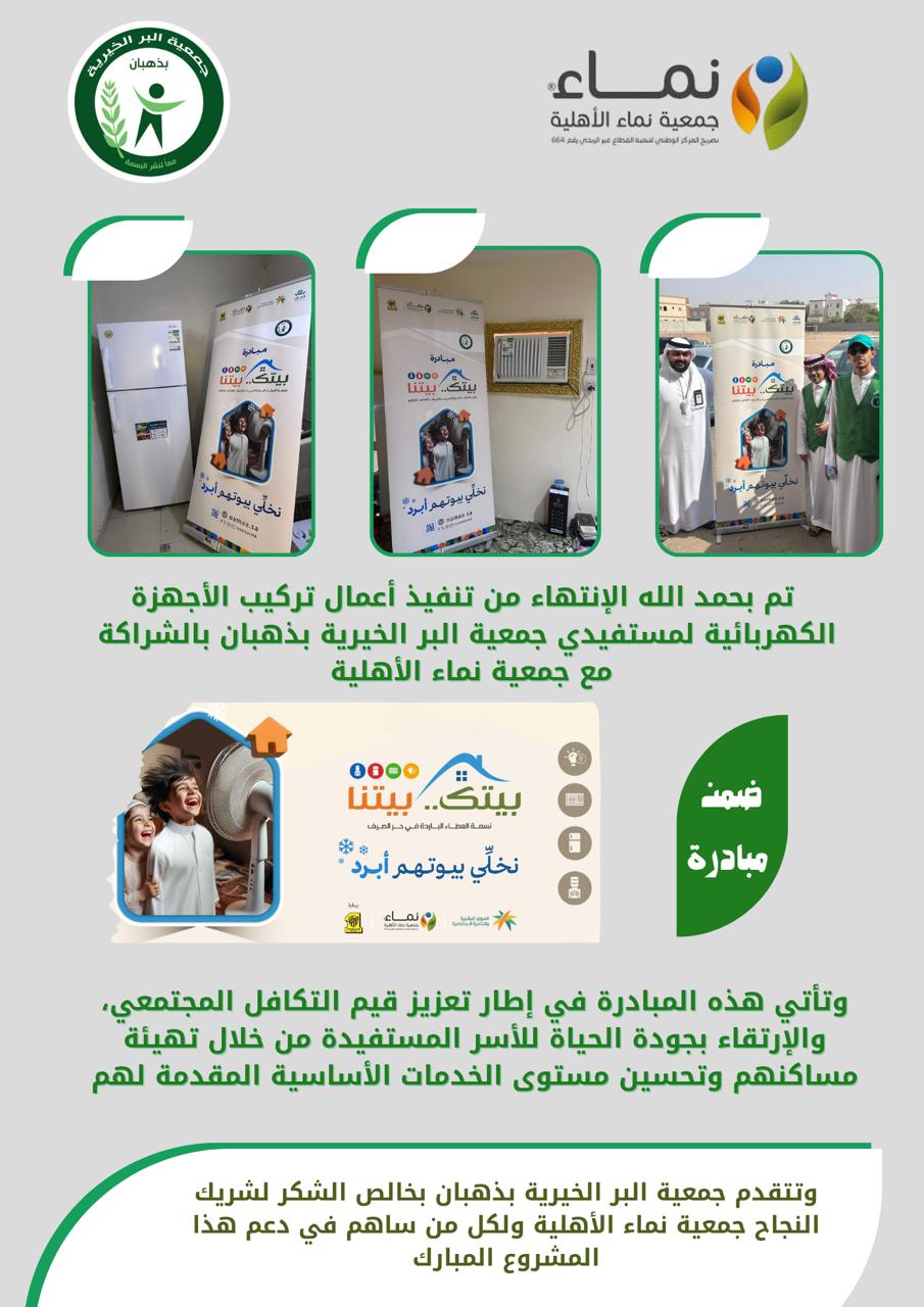 - ضمن مبادرة بيتك بيتنا تنهي جمعية البر الخيرية بذهبان مشروع الاجهزة الكهربائية بالشراكة مع جمعية نماء الأهلية
